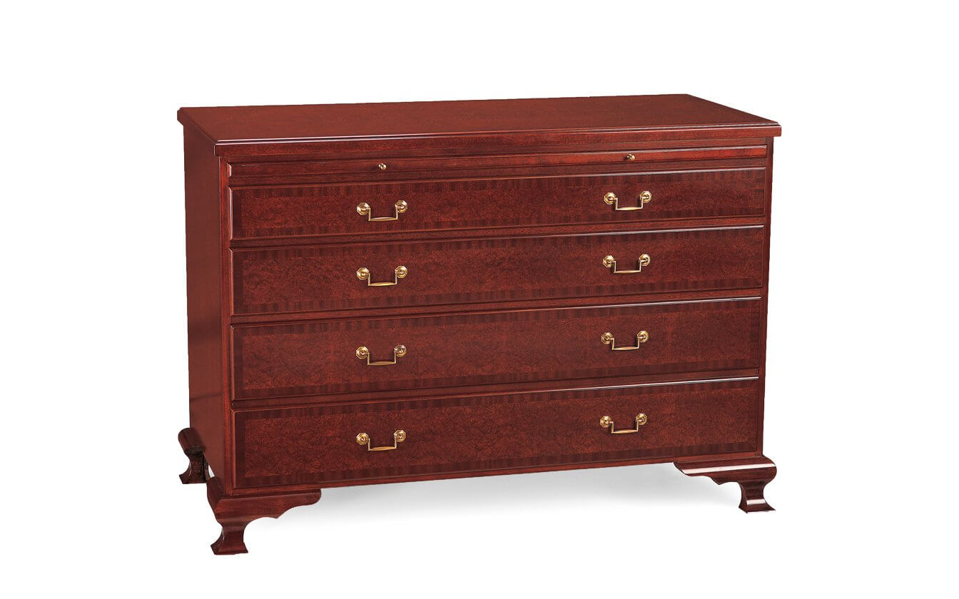 Asia Cherry wood and veneer, with four drawers and one pull-out tray.