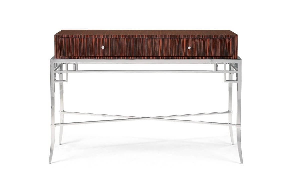 Macassar ebony veneer with polished stainless steel base.