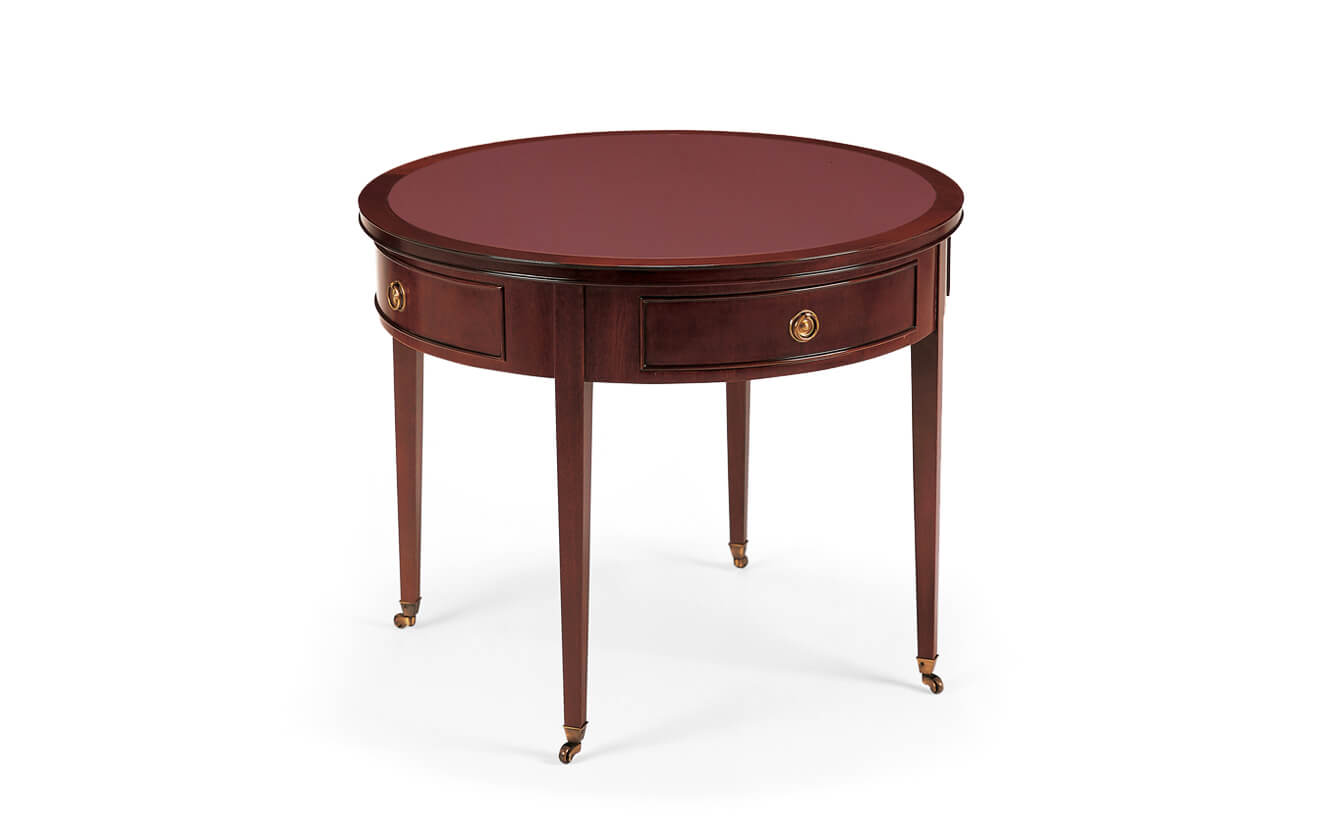 Asia Cherry wood and veneer with brass castors. COL upholstered top.